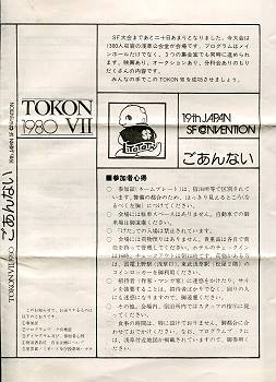 1980年8月7日第19回日本SF大会TOKONZプログラムブック B5オフセット42ページ