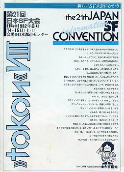 1982年8月開催 第21回日本SF大会TOKON[プログレスレポート3 1982年7月発行 B5オフセット16ページ 折れあり