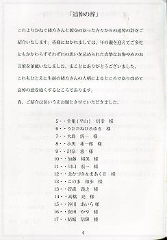 追悼の辞:生亀(平山)信幸・うたたねひろゆき・大島洸一・小黒祐一郎・計奈恵・加藤裕美・川口宏一・北かづき&まあくU・このま和歩・菅森義之・高橋亮・谷川あいら・安田かや・結城信輝