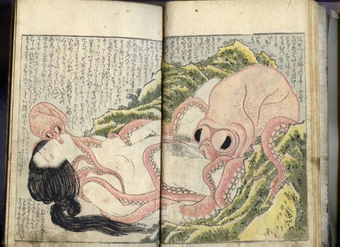 表題の文字はまるで念仏みたいに見えますが”きのえのこまつ”と読みます。葛飾北斎の作で”蛸と海女”の絡みで有名な艶本です。 どんなものかとゆうとこんなものです。