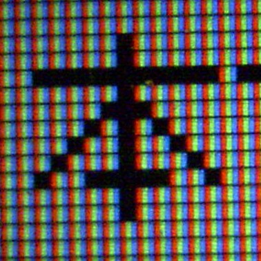 ノートパソコンの液晶画面。白地に黒で”本”というフォントを撮影。ちなみにトリミングはしたけれど拡大はしておりません。背景が白に見えないところがすごい。だからどうしたといわれても困るけれど(^^;。