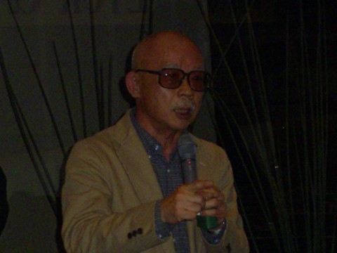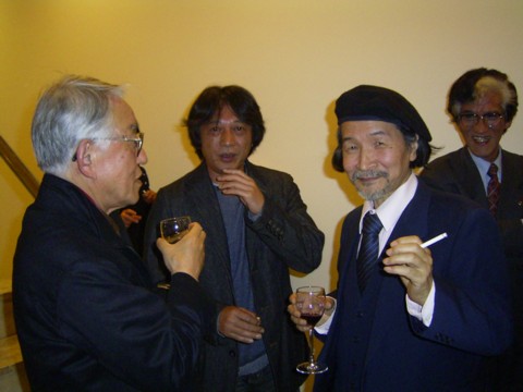 左、巴里夫。中央、米沢嘉博。右、みやわき心太郎。 パーティ会場が禁煙なので、みんな喫煙所の階段脇にたむろするする(笑 8時半過ぎに解散し、私は2次会パスなので、米沢さん巴さん等と談笑しながら四谷三丁目の駅までぶらぶら歩いて帰る。
