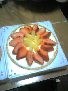 レアチーズケーキタルトの上にイチゴとパインでデコレート 内職その1は、やる気もすっかり失せたし、元々金が欲しくて始めた仕事でもない(金が欲しいことは欲しいけど)ので、放置プレイでも良いのだけれど、秋田の片田舎で若干3名ばかり困る人間もいるので、年明け後も一応やることにする。しかしシュリンクした仕様を検討してみるが、どうも技術的に上手くいきそうな気がしない(-_-; 内職その2は、
