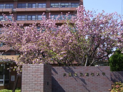 大学正門。ソメイヨシノではなく八重桜なので今が満開の様。 大学は建物がやたらと増えてはいるが、基本構造はあまり変わらず。ただしそれでも手狭になっている様で、幹線道路を挟んだ向かい側にも実験関係の建物が増設されていた。正門脇にあった食堂が、ガラス張りのえらく瀟洒な建物に変貌していた。 大学を通り抜け、下宿屋に向かう。幹線道路からちょっと脇に入って1キロほど歩くと昔田んぼだったところが今でも田んぼなのに呆れる。その田んぼの中に高速道路の橋脚が建設中。どうも第二京阪が通る様だ。