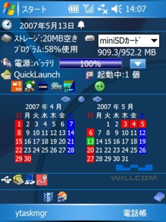 こちらは”TCPMP”。DivxやMPEG1、MPEG4など各種動画形式をサポートする優れもの。 他にも差し込んだSDカードをPC側からストレージとして認識させるUSBSELECT等、面白いソフトが色々あります。 最後に肝心の電話としての機能。着信があってもキーの応答が出来なくて電話に出れなかったり、いきなりフリーズしてハードリセットが必要になったりと問題は大いにあります。電話機能はOS上に乗っけるのではなく、やっぱり根幹部分に乗っけて欲しい。 まあ、色々書いたけど、通信機能搭載のPDAとしては、非常に面白いです。通信速度はそれなりだけど、料金考えれば納得は出来ます。かつてPDAを使っていた頃に比べれば、通信が標準搭載されたことにより、格段に使い道が広がってはいます。 かつてテッド・ネルソンが提唱した”ザナドゥ”(ゲームじゃないよ)とか、アラン・ケイの”ダイナブック”(東芝のじゃないよ)とか、理想のコンピュータ環境に関するパラダイムがありました。一歩一歩近づいているような気もすれば、ねじ曲がってきたような気もします。まあ、まだまだ発展途上なんでしょう。