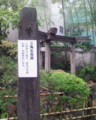 一応お目当ての三柱鳥居も元々は三井のお屋敷にあったらしい。なぜ三本柱なのかとか、なぜ真ん中に井戸があるのかとか、色々と疑問がわいてくるけど、とりあえずは不明。原型は太秦寺に在ったらしいので、景教がらみじゃないかとかユダヤ教がらみじゃないかとか色々と説はあるらしいのだが、どれも噂の域を出ないようである。