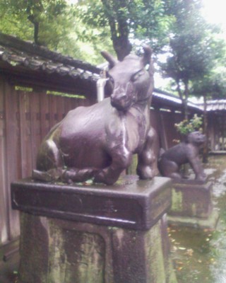 境内には、狛犬の他に狛牛も居た。他に撫牛の像や包丁塚などもあり、どうやら牛にまつわる由来の神社のようである。
