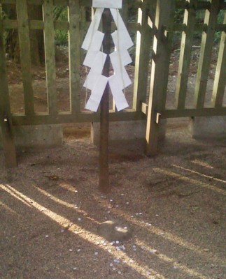 普通の賽銭箱が無くて、貯金箱のような賽銭入れが柱に取り付けてありました。 そういえば昨日の晩、同業者と飲んでいてふと思い出したのだが、15日は自分の誕生日だった(^^;。