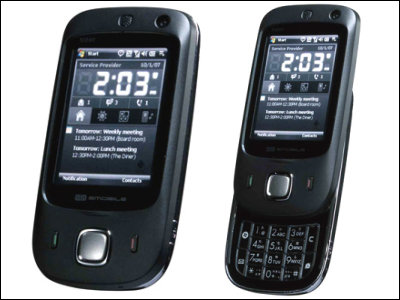 この写真がS12HT。S11HTと同じHTC社製でS11HTより一回り小さくて指先タッチインタフェースのTouchFLOを搭載。 外見をみるだけだとDOCOMOのHT1100と全く同じに見えるけど、厚さが3mmほど薄いので別ハードのようだ。 S11HT購入して1ヶ月も経たないのに〜と一瞬思ったが、10キーインタフェースは趣味じゃない(上手く使えない)し、TouchFLOに関しては、興味はあるがしょせんWindowsMonileOS上に被せたSHELLでは意味がないと思っている。SHELLや専用アプリをイジル分には指先で可能だが、汎用アプリやOS上の設定になるとスタイラスペンでしか操作できないのでは意味がない。結局インタフェースというのは中途半端はダメで、どうせやるならiPhoneの様に根っこまでそのインタフェースで操作できるようにしなければダメだと思う。 おかげで地団駄踏まずに済んだ(^^;。 そのうち出てくるであろうTouch Diamondも興味はあるが、根本的に同じインタフェースなので、あわてて買うほどではないと思っている(でも画面がVGAなのはちょっとそそる)。