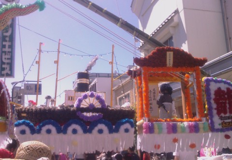 もうほとんどシャッター商店街なんだけど、この時だけは人手があった。写真は坂本龍馬を題材にした七夕飾り。後ろ向いて見えないけれど、龍馬を扮しているのはアンパンマン。