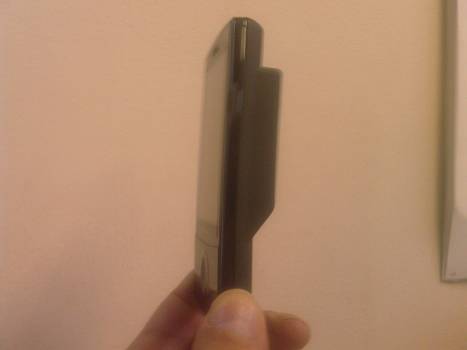 装着するとこんな感じ。最大厚さは6mm増加。見た目はなんだか不恰好だけど出っ張りのおかげで意外と持ちやすくなるという変なメリットはある。欠点はもうひとつあって上側の出っ張りとカメラの穴位置がかなり接近しているのでカメラの撮影画像の端に微妙な影ができる。