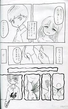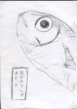 今回購入した15,6冊の同人誌の中で一番気になったのはこれです。タイトルは「彼女のアレが魚だった」。A4サイズで38ページのコピー誌。あくまでも一番気に入った作品ではなくて一番気になった作品です。絵に関していえば、なんて言いますかもう枠線は定規使ってないし、絵は殴り書きとは言わないが、下書き段階の絵です。しかもデッサン適当で細部はハナから描く気がないレベルです。それではストーリーがものすごく魅力的かといえば、ある種類型的で斬新さはない。それじゃあ全然いい所がないじゃないかと言われれば返す言葉もないのですが…。でも何故か凄く気になってしまった作品である。 でも同人誌って本来はそういうものかもしれない。描き手の生々しい表現を感じられるのは、同人誌ならではではあると思う。 他の作品もあったので次回購入してみたいと思うのだけど、困ったことにサークル名も作者名も記載がない。いくら手抜きでも作者名ぐらいは書いておいてくれ(泣)