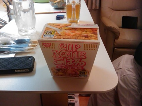 上の写真は関西土産として宴会に持ち込んだ現在の時点では関西限定販売カップヌードルごはん。1個250円とちょっと高めだけれど、意外と美味しい。でも普通のカップヌードルみたいにお湯だけでは作れずに電子レンジが必要なので、爆発的な普及は難しいかもしれない。 8時ころ宴会終了。自宅についたのは10時ころ。とても疲れましたorz。