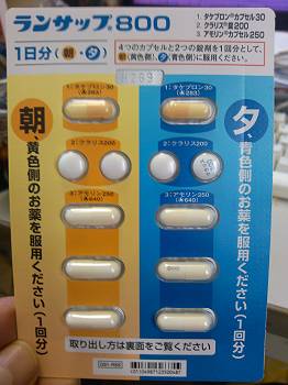 てなわけで処方してもらったピロリ菌駆除薬「ランサップ800」。3種類の薬(タケプロン・アモリン・クラリス)6錠を朝晩、7日間服用。以前は80%の駆除率だったらしいが、最近は耐性菌が増えていて70%位らしい。さて駆除はうまくいくでしょうか。結果がわかるのは2,3ヶ月先。 ついでに最近までの血液診断関係の数値をメモ。